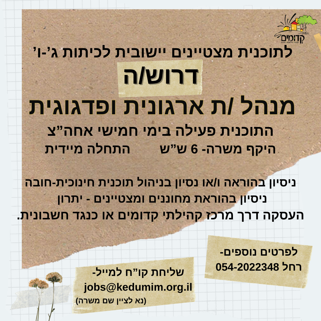 מנהל/ת ארגונית ופדגוגית לתוכנית מצטיינים יישובית לכיתות ג'-ו'
