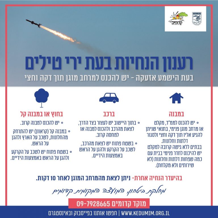 סרטון הסברה לתושבי קדומים בנושא היערכות לירי טילים.