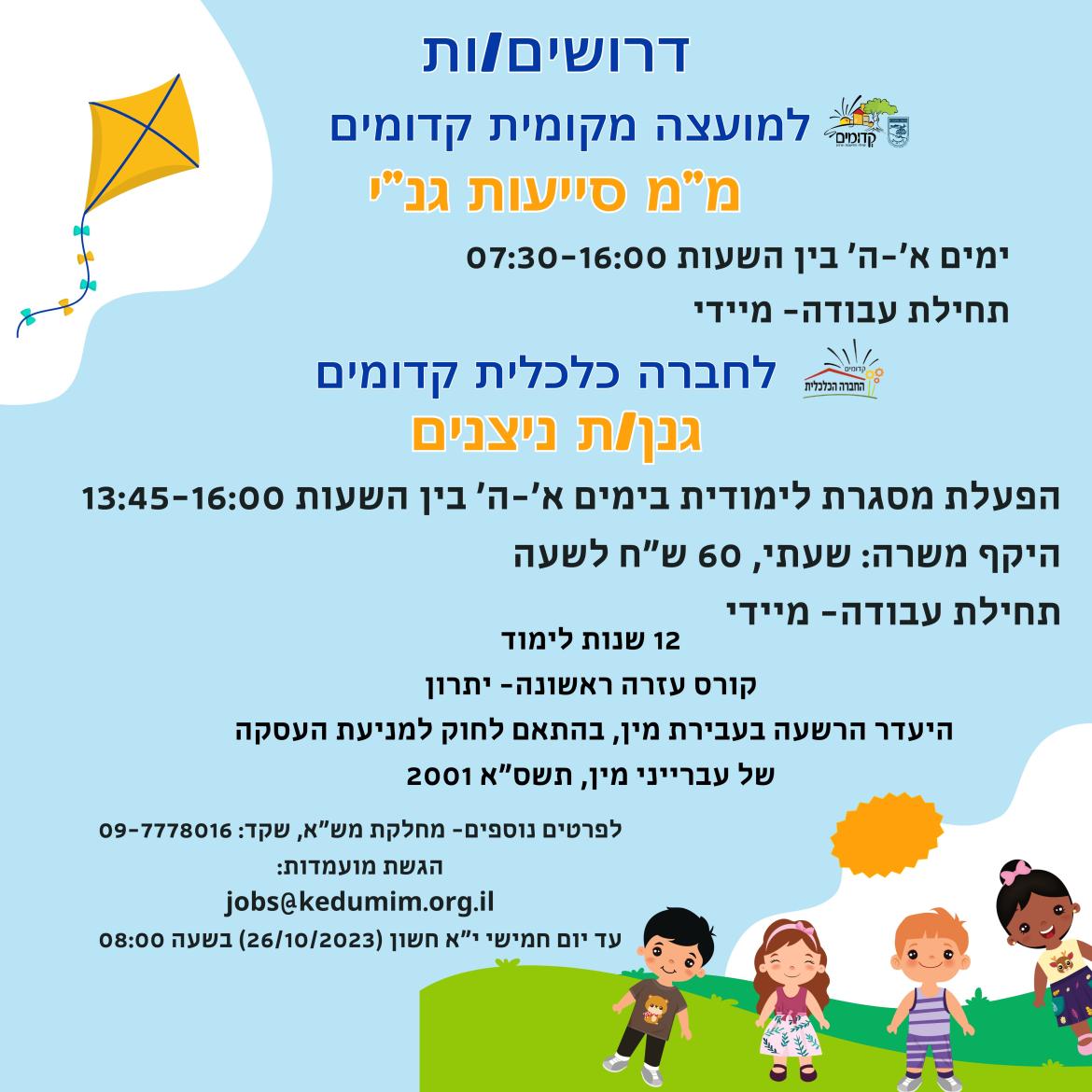 דרושים/ות מ"מ סייעות גנ"י וגננים/ות ניצנים