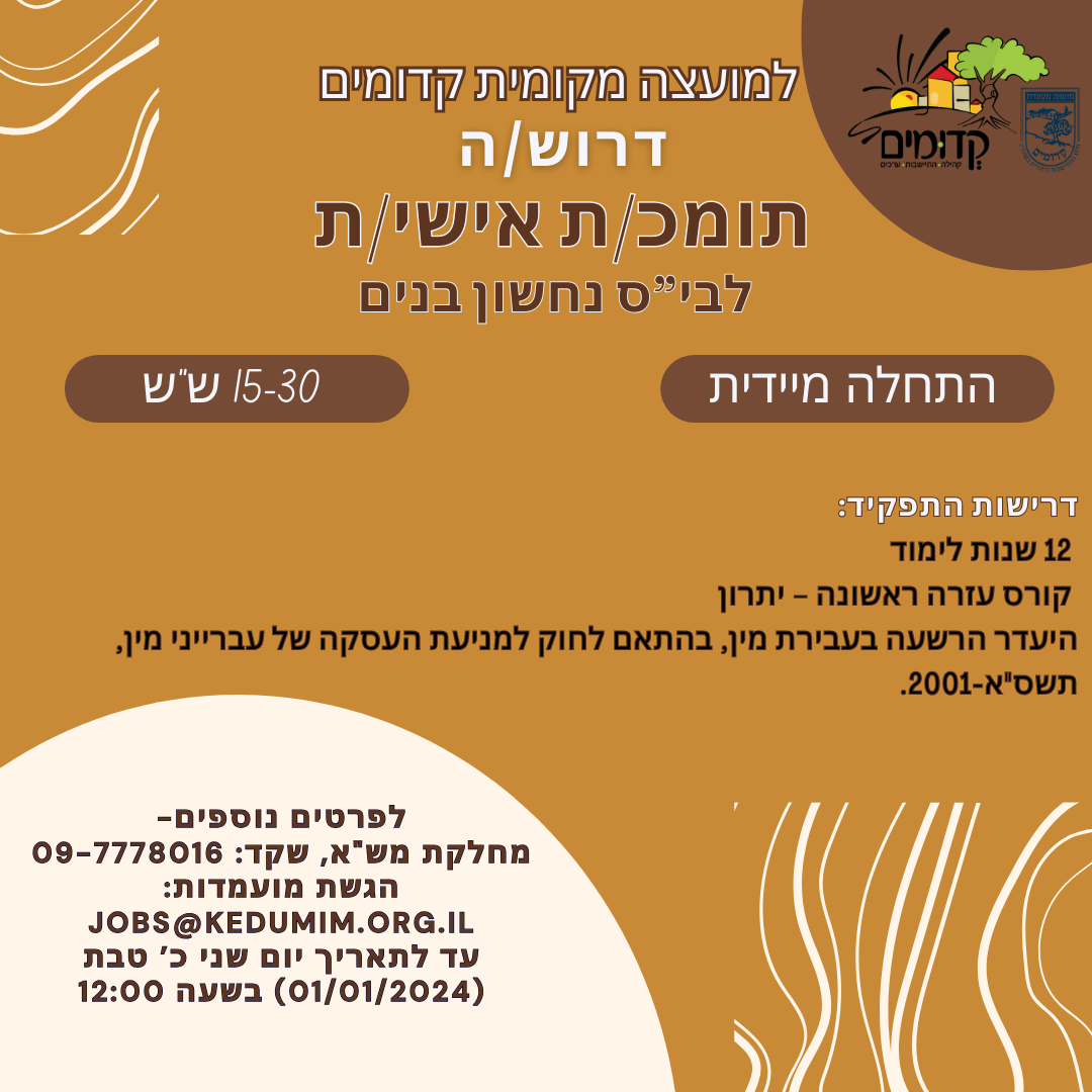 תומכ/ת אישי/ת לבי"ס יסודי נחשון בנים קדומים