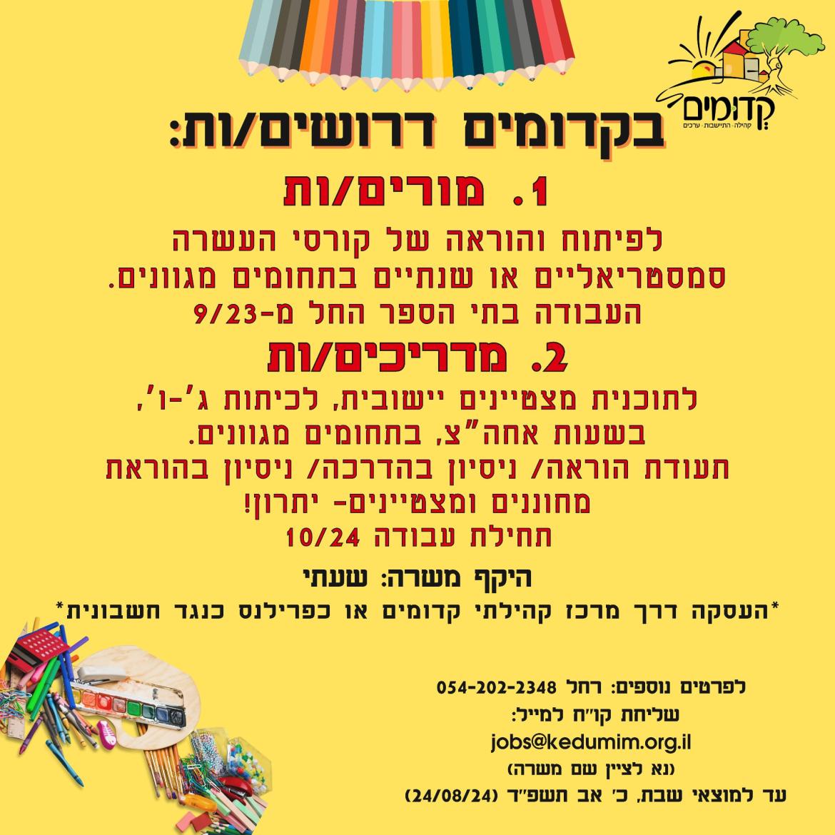 דרושים/ות מורים/ות ומדריכים/ות להובלת תכניות חינוכיות